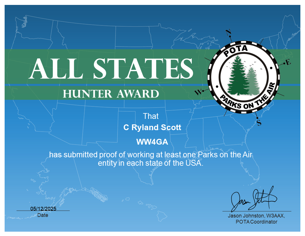 Since 2024 I have made contact with stations in 167 countries, all 50 states, and other stations operating portable in parks in all 50 states.